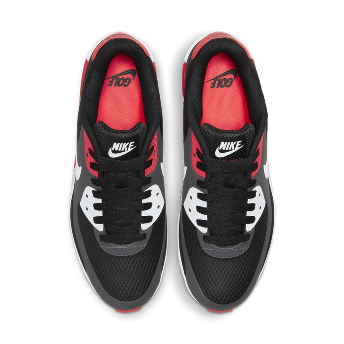 • The original Nike Air Max 90 was renowned for its clean lines and timeless style. The Nike Air Max 90 G stays true to the OG icon with a few updates made for golf, like integrated traction and a thin overlay that helps keep out water.